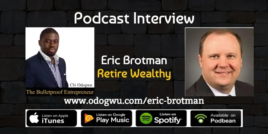Description: On this week’s show I interview the author of Retire Wealthy and the founder of Brotman Financial, Eric Brotman. I ask Eric about ‘graduating’ into retirement and lots more, don’t miss it!